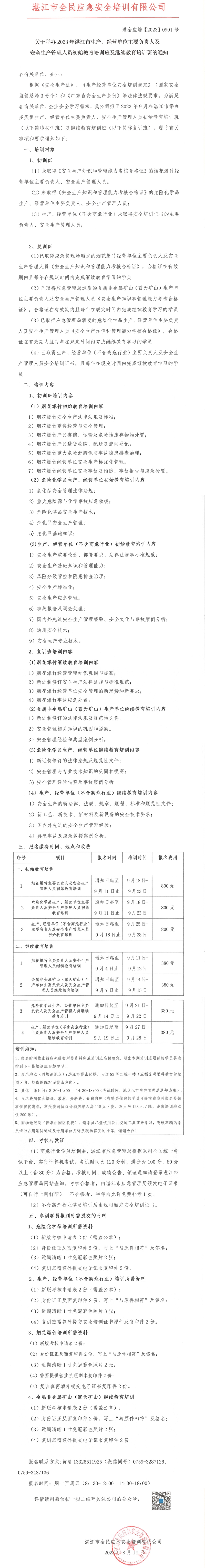 2023年9月湛江市生產(chǎn)、經(jīng)營(yíng)單位主要負(fù)責(zé)人及安全生產(chǎn)管理人員初始教育培訓(xùn)班及繼續(xù)教育培訓(xùn)班的通知